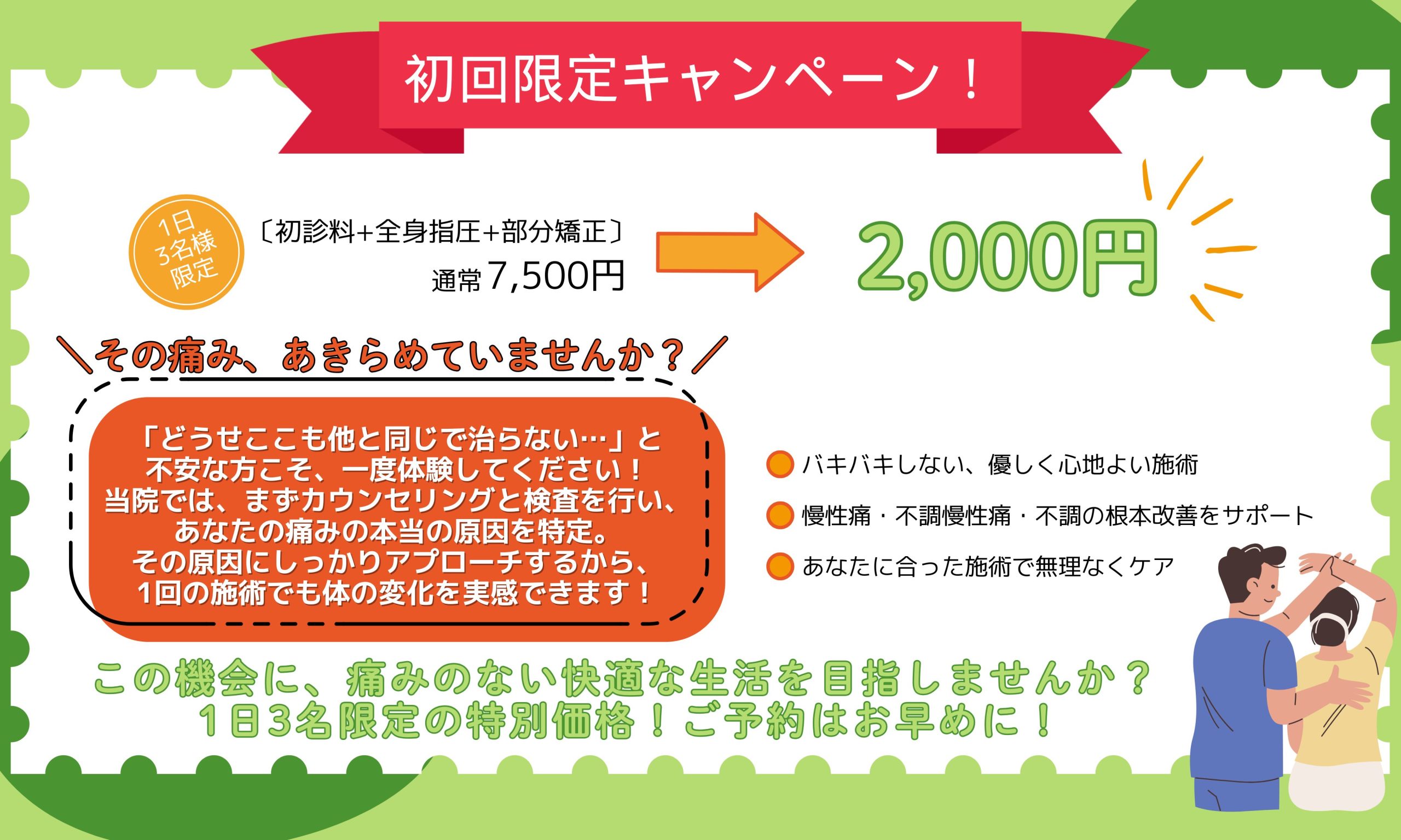 | トリガーポイント指圧 | 20分:2,500円 30分:3,500円 |